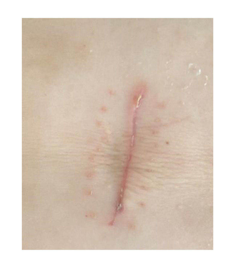 שלושה (3) ימים לאחר הניתוח, סימנים לזיהום הפצע באזור החתך.א