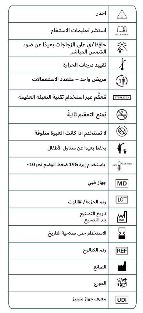 يوفر ما يلي وصف الرموز التي تظهر على ملصق سلفر ستريم