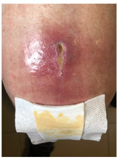 סוג הפצע: זלושה שבועות לאחרי ניתוח להחלפת ברך, פצע מפריש, מזוהם ולא מחלים באתר הניתוח